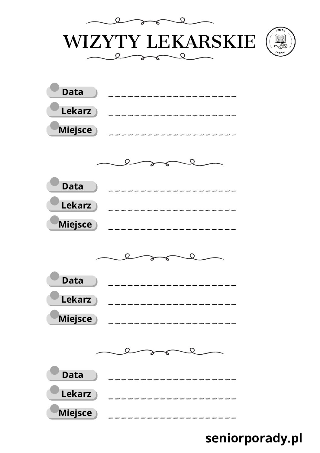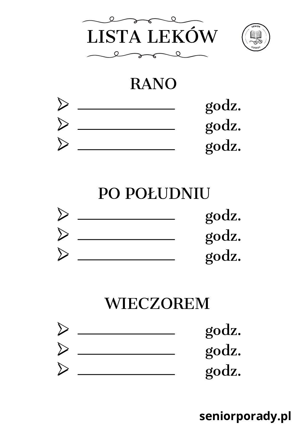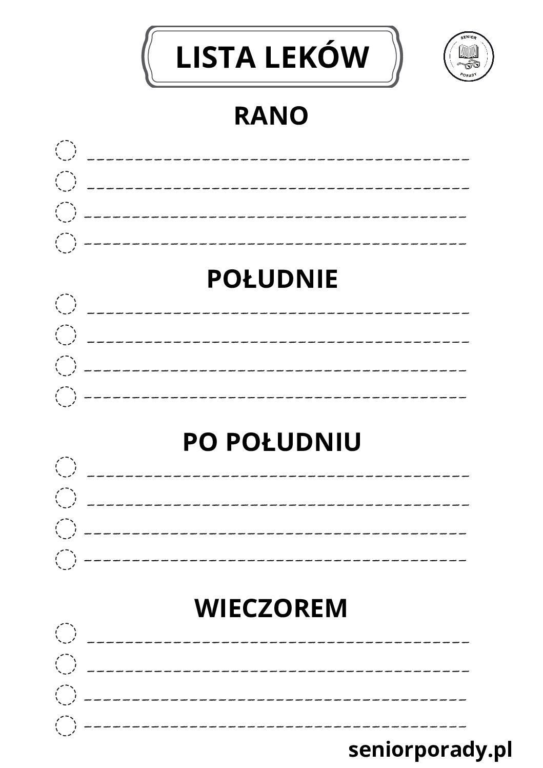 - 💊 Karta Leków (Długa i Krótka): Wpiszesz tam nazwy leków, dawkowanie (rano/południe/wieczór) i uwagi. Powieś to na lodówce lub trzymaj przy apteczce.